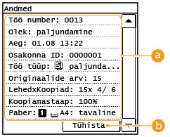 Kuvatakse koopiate arv, seaded ja muud üksikasjad. Kui soovite üksikasju lihtsalt vaadata ja paljundamist mitte tühistada, vajutage paljundamise põhikuvale naasmiseks klahvi
