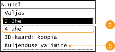 vajutamist suurendada või veel rohkem vähendada, kuid suurendamisel võivad dokumendi servad jääda paljundamata.<2 ühel>/<4 ühel> pole saadaval, kui kasutate seadet <Raami kustutamine>, <Erineva suurusega originaalid>, <Raamat