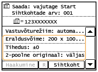 Kui soovite sihtkohad sihtkohaloendi kuvamiseta lihtsalt ja kiirelt kustutadaEnne seade <Sihtkoht> valimist 1. juhises võite määratud sihtkohtade vahetamiseks vajutada klahvi