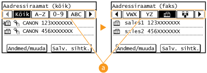 Aadressiraamatu abil saate määrata sihtkoha salvestatud sihtkohtade loendist valimise või adressaadinimega sihtkoha nime järgi otsimisega.