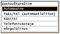 Saate määrata seadme automaatselt fakse vastu võtma, kui sissetulev kõne teatud aja jooksul heliseb. Lülitu automaatsele vastuvõtule