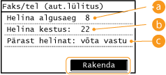 Kõlab saabuva kõne helin. Võtke telefonitoru. Kui kuulete piiksu, puudutage faksi vastuvõtmiseks nuppu <Vastuvõtu käivitus>