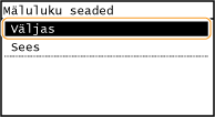 Mälus talletatud vastuvõetud dokumentide printimiseks määrake seade <Mäluluku seaded> väärtuseks <Väljas>. Mällu salvestatud dokumendid prinditakse.