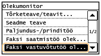 Puudutage valikut <Faksi vastuvõtutöö olek/logi>.