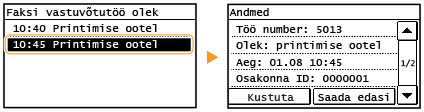 Saate vaadata mällu talletatud dokumentide üksikasjalikku teavet (sh saatja faksinumbrit ja saadetud lehtede arvu) ja seejärel ebavajalikud dokumendid kustutada.