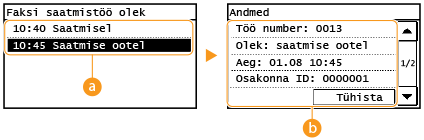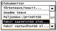 ![]() <Faksi saatmistöö olek>/<Faksi vastuvõtutöö olek>Kuvatakse saadetavate ja vastuvõetavate või töötlemist ootavate dokumentide loend.
