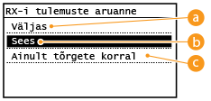 Printides vastuvõtuaruande saate kontrollida vastu võetud faksidokumentide logisid. Aruande saab printida, kas iga kord pärast edastuse lõppu või ainult vastuvõtutõrgete korral.