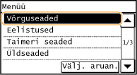 Kõik võrguseaded on esitatud lühikese kirjeldusega. Vaikeseaded on tähistatud ristiga (