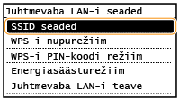 Puudutage valikut <Juhtmevaba LAN-i seaded>.