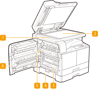 Ανοίξτε αυτό το κάλυμμα για να αφαιρέσετε μπλοκαρισμένα χαρτιά από το συρτάρι χαρτιού 1.