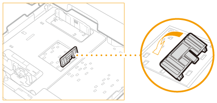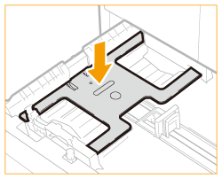 Ενώ πιέζετε το άνω μέρος του δεξιού οδηγού, σύρετέ το για να ευθυγραμμιστεί με την ένδειξη μεγέθους για το χαρτί προς φόρτωση.