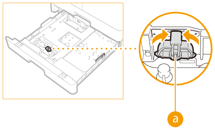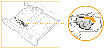 Σηκώστε τον μοχλό ασφάλισης του εμπρός οδηγού ολίσθησης και σύρετέ τον προς τα πίσω ή εμπρός για να τον ευθυγραμμίσετε με την εγκοπή με την ένδειξη για το επιθυμητό μέγεθος χαρτιού.