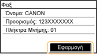 Μπορείτε, επίσης, να κάνετε λεπτομερείς ρυθμίσεις από το <Μενού>  <Ρυθμίσεις Φαξ>. Ωστόσο, οι ρυθμίσεις που κάνετε στο <Βιβλίο Διευθύνσεων> ισχύουν στις λεπτομερείς ρυθμίσεις των προορισμών που έχετε καταχωρήσει στο Βιβλίο Διευθύνσεων.