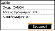 Εισαγάγετε το όνομα χρησιμοποιώντας τα αριθμητικά πλήκτρα και πατήστε <Εφαρμογή>.