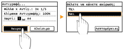 Πατήστε <Άκυρο> στην οθόνη που εμφανίζεται κατά την αντιγραφή