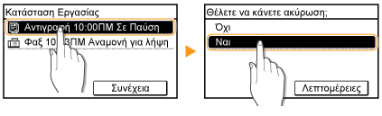 Τα έγγραφα έχουν σαρωθεί και περιμένουν να εκτυπωθούν. Επιλέξτε το αντίγραφο που θέλετε να ακυρώσετε.