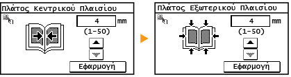 Όταν αντιγράφετε έγγραφα που έχουν μικρότερο μέγεθος από το μέγεθος χαρτιού εξόδου, ενδέχεται να εμφανιστούν περιμετρικές γραμμές στα άκρα του αντιγράφου. Όταν αντιγράφετε αντικριστές σελίδες ενός χοντρού βιβλίου, ενδέχεται να εμφανιστούν σκούρα περιγράμματα. Με την επιλογή <Διαγραφή Πλαισίου> μπορείτε να διαγράψετε αυτές τις περιμετρικές γραμμές και τα σκούρα περιγράμματα.