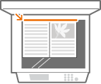 Για να σαρώσετε ένα έγγραφο με αντικριστές σελίδες, τοποθετήστε το στην επιφάνεια σάρωσης. Τοποθετήστε το έγγραφο με την εκτυπωμένη όψη προς τα κάτω και ευθυγραμμίστε τη γωνία του με την επάνω αριστερή γωνία της επιφάνειας σάρωσης, όπως απεικονίζεται παρακάτω.
