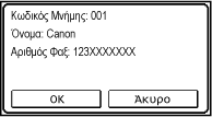 Για να στείλετε φαξ, μπορείτε να εισάγετε απευθείας τον τριψήφιο αριθμό (κωδικό μνήμης) που αντιστοιχεί σε έναν προορισμό.