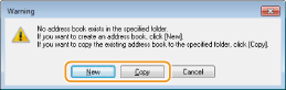 Αν θέλετε να δημιουργήσετε ένα βιβλίο διευθύνσεων, επιλέξτε [New] (Νέο). Εάν θέλετε να αντιγράψετε το υπάρχον βιβλίο διευθύνσεων στον καθορισμένο φάκελο, επιλέξτε [Copy] (Αντιγραφή).