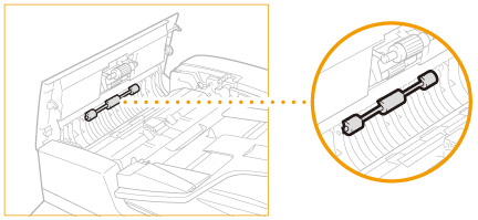 Μπορεί να κολλήσει σκόνη και πούδρα γραφίτη στον κύλινδρο στο εσωτερικό του τροφοδότη και να προκαλέσει την εμφάνιση μουντζούρων στις εκτυπώσεις. Για να καθαρίσετε τον τροφοδότη, εκτελέστε την παρακάτω διαδικασία. Αυτή η διαδικασία απαιτείται μόνο εάν είναι εγκατεστημένος ο τροφοδότης (DADF-AT1).