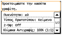 Θα εμφανιστεί ένα μήνυμα στη συσκευή, όταν μια κασέτα γραφίτη είναι σχεδόν άδεια. Έχετε υπόψη σας ότι η ποιότητα εκτύπωσης μειώνεται, εάν συνεχίσετε να εκτυπώνετε και δεν προβείτε σε οποιαδήποτε ενέργεια. Μπορείτε να ελέγξετε την ποσότητα γραφίτη που απομένει στην οθόνη.