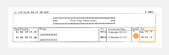 Μπορείτε να ελέγξετε τα αρχεία καταγραφής των απεσταλμένων και ληφθέντων εγγράφων εκτυπώνοντας μια αναφορά διαχείρισης επικοινωνίας. Η αναφορά μπορεί να εκτυπωθεί αυτόματα μετά από κάθε 40 μεταδόσεις ή μπορείτε να την εκτυπώσετε χειροκίνητα.