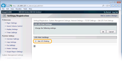 Επιλέξτε το πλαίσιο ελέγχου για εκτύπωση μέσω LPD. Όταν δεν χρησιμοποιείτε εκτύπωση LPD, καταργήστε την επιλογή του πλαισίου ελέγχου. [Use RAW Printing]