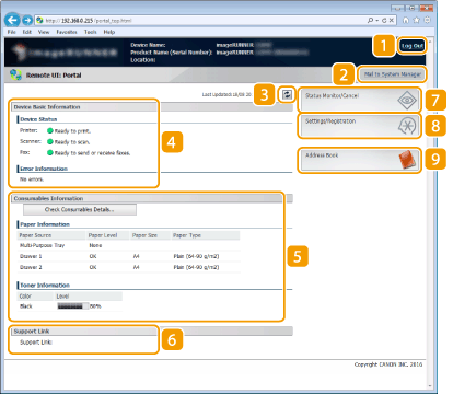 Γίνεται αποσύνδεση από το Remote UI (Απομακρυσμένο περιβάλλον εργασίας). Θα εμφανιστεί η σελίδα σύνδεσης.