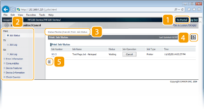 Εμφανίζει την κατάσταση των εγγράφων που πρόκειται να εκτυπωθούν και το ιστορικό εγγράφων εκτύπωσης, αντιγραφής, αποστολής και παραλαβής. Μπορείτε επίσης να ελέγξετε την κατάσταση της συσκευής.