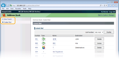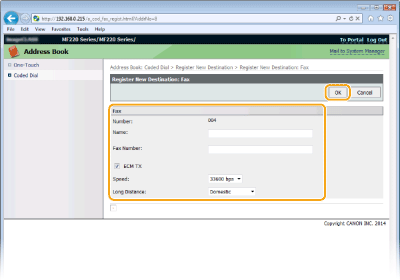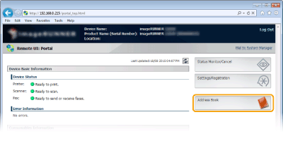 Καταχώριση του Βιβλίου Διευθύνσεων από το Remote UI (Απομακρυσμένο περιβάλλον εργασίας) (imageRUNNER 2204F)