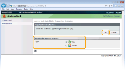 Επιλέξτε [Destination Type to Register] και κάντε κλικ στο [OK].