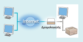 Η διεύθυνση ΙΡ είναι μια αριθμητική ετικέτα που εκχωρείται σε κάθε συσκευή που συνδέεται σε δίκτυο υπολογιστών. Για την επικοινωνία μέσω του Internet, χρησιμοποιείται μια γενική διεύθυνση ΙΡ ενώ, για την επικοινωνία σε τοπικό δίκτυο, όπως το δίκτυο LAN μιας εταιρείας, χρησιμοποιείται ιδιωτική διεύθυνση ΙΡ. Αν εκχωρηθεί γενική διεύθυνση ΙΡ, ο εκτυπωτής/το πολυμηχάνημα είναι ανοικτό στο κοινό και επιτρέπεται η πρόσβαση μέσω του Internet. Έτσι, αυξάνεται ο κίνδυνος διαρροής πληροφοριών λόγω μη εξουσιοδοτημένης πρόσβασης από το εξωτερικό δίκτυο. Από την άλλη, αν εκχωρηθεί ιδιωτική διεύθυνση ΙΡ, ο εκτυπωτής/το πολυμηχάνημα περιορίζεται στο τοπικό δίκτυο και η πρόσβαση επιτρέπεται μόνο σε χρήστες του τοπικού δικτύου, όπως το LΑN μιας εταιρείας.