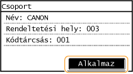 Ismételje meg a 8. és 9. lépést mindaddig, amíg minden bejegyezni kívánt rendeltetési helyet hozzá nem adott a csoporthoz, majd érintse meg az <Alkalmaz> gombot.