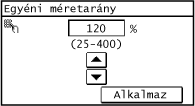 gombokkal vagy a számgombokkal adja meg a másolási méretarányt, és nyomja meg az <Alkalmaz> gombot. A készüléken 25 és 400% közötti másolási méretarányok adhatók meg 1%-os lépésekkel./b_dis622.gif)