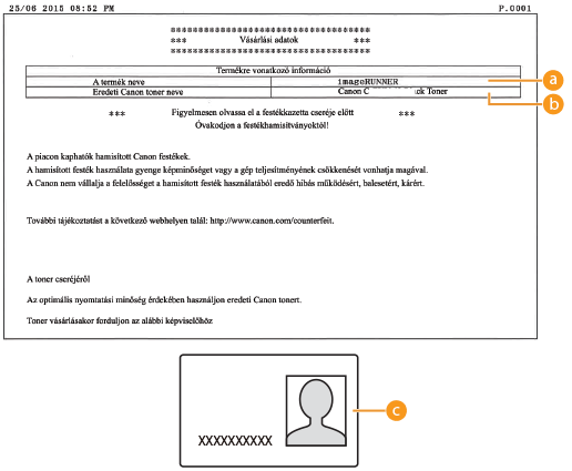 A hivatalos Canon kereskedők adatainak (névjegyek, címek, információk stb.) beolvasásával és tárolásával felkészülhet a fogyóanyagok beszerzésére. Kinyomtathatja a tárolt információt, amikor a fogyóanyagok beszerzésére szükség van.