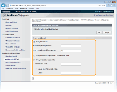 Jelölje be a [Proxy használata] jelölőnégyzetet, és adja meg a szükséges beállításokat.