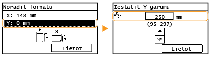 Ievadiet malas <Y: @@_@@/@@"> garumu un pieskarieties <Lietot>.