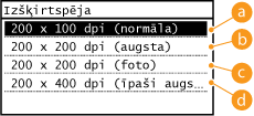 Varat izvēlēties savam dokumenta veidam piemērotu izšķirtspēju. Jo lielāka ir izšķirtspēja, jo skaidrāki ir attēli, taču to sūtīšanai nepieciešams vairāk laika.