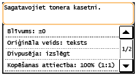 Parādītais ziņojums mainās atkarībā no atlikušā tonera daudzuma. Atkarībā no parādītā ziņojuma ir jāsagatavo rezerves tonera kasetne vai jānomaina tonera kasetne.