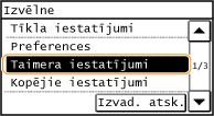 Visi taimera iestatījumi ir ar īsu aprakstu. Noklusējuma iestatījumi ir atzīmēti ar krustiņu (