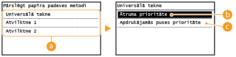 ). Automātiskā atvilktnes izvēle vienmēr ir iespējota drukāšanai no papīra padeves, izmantojot universālo tekni.