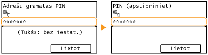 Adrešu grāmatā varat iestatīt PIN ievadi pirms jaunu adrešu grāmatas ierakstu ievades vai esošo ierakstu rediģēšanas. Iestatot adrešu grāmatas PIN, tiek samazināts risks, ka dokumenti tiks nosūtīti nepareiziem adresātiem, jo izmaiņas adrešu grāmatā var veikt tikai tie lietotāji, kuri zina PIN.