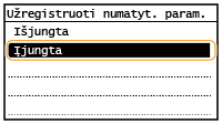 Turite nurodyti įdėto popieriaus formatą ir tipą atitinkančius parametrus. Jei dedate kitokį popierių, nei buvo įdėtas anksčiau, būtinai pakeiskite popieriaus parametrus. Taip pat galite įregistruoti numatytąjį į universalųjį dėklą dedamo popieriaus formatą ir tipą. Tai patogu, jei visada dedate to paties formato ir tipo popierių.