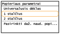 Jei norite registruoti popierių 1 arba 2 popieriaus stalčiuje