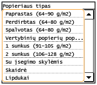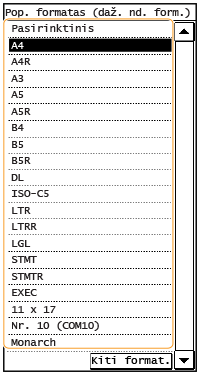 Popieriaus formatai be žymės rodomi ekrane <Pop. formatas (kiti formatai)>.