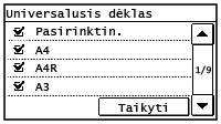 Galite nustatyti, kad pasirinkimo ekrane aparatas rodytų tik dažniausiai naudojamo popieriaus formatus.