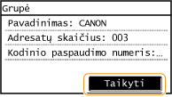 Įregistravę adresatus, galite keisti grupių turinį, pavyzdžiui, pavadinimus, adresatus ir kodinio rinkimo numerius.