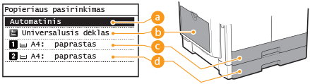Pirma turite nurodyti į popieriaus šaltinį įdėto popieriaus formatą ir tipą.