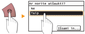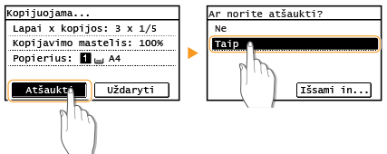 iš karto norite atšaukti kopijavimą, ekrane bakstelėkite <Atšaukti> arba valdymo pulte paspauskite